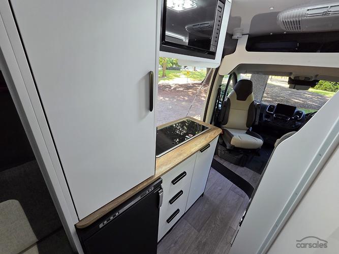 The Avida Escape campervan is one of the most unique campervans on the market being able to sleep four. At the touch of a button, the large electric bed drops down from the ceiling.